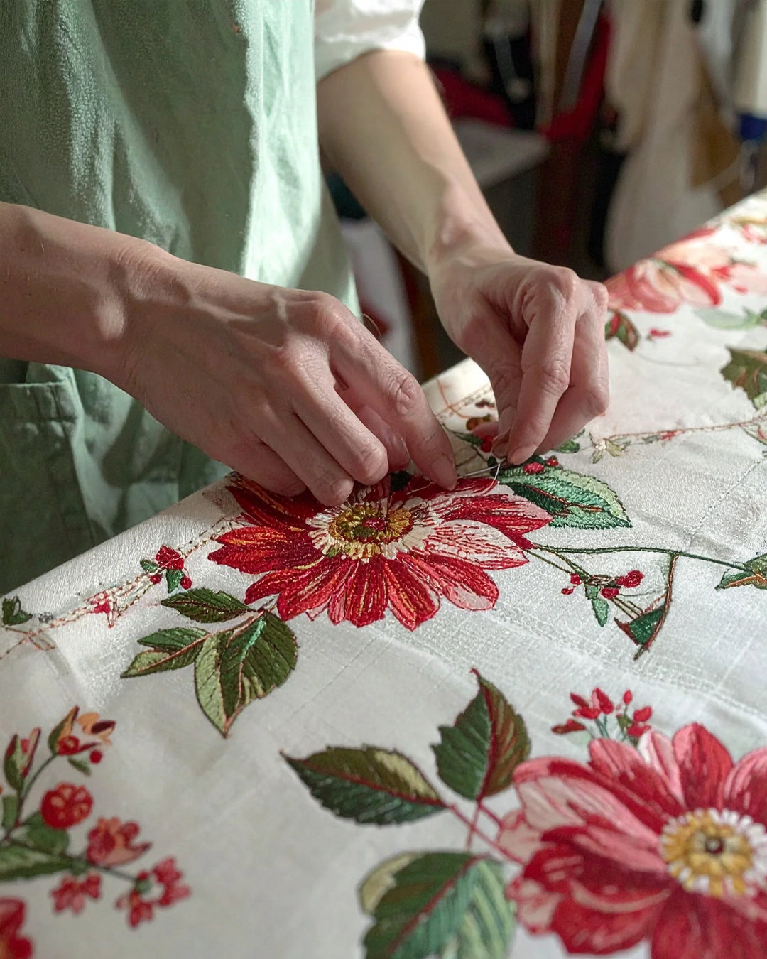 “Sólo he comprado online, pero la atención resolviendo mis dudas y la amabilidad es impresionante. Por no hablar de los manteles, que son auténticos lienzos, espectaculares y únicos. Todo increíble. Cuando vaya a Madrid iré sin falta.”