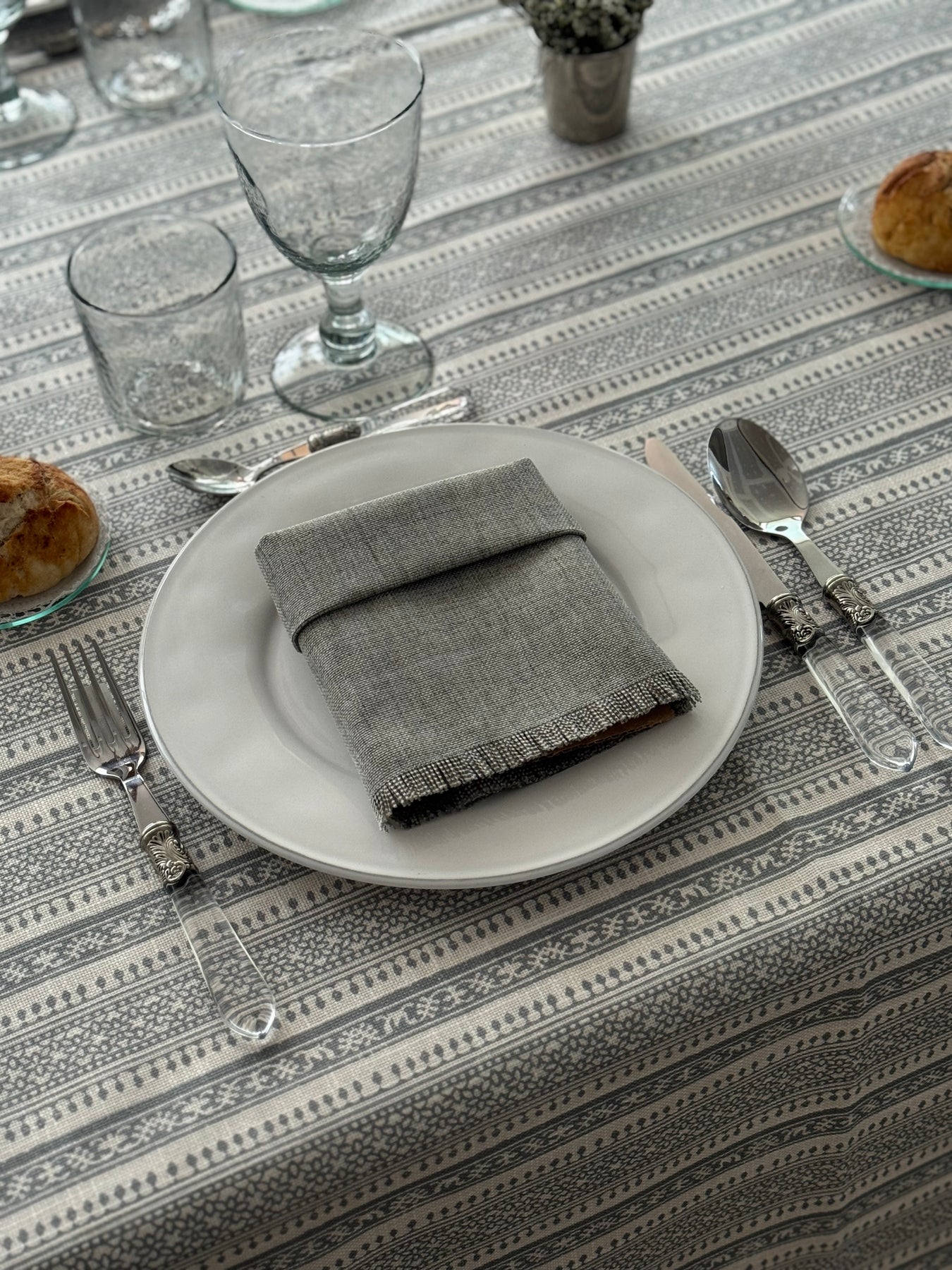 En La Compañía Francesa nos gusta hacer manteles cuadrados para mesas redondas, ya que lucen más sofisticados y modernos.