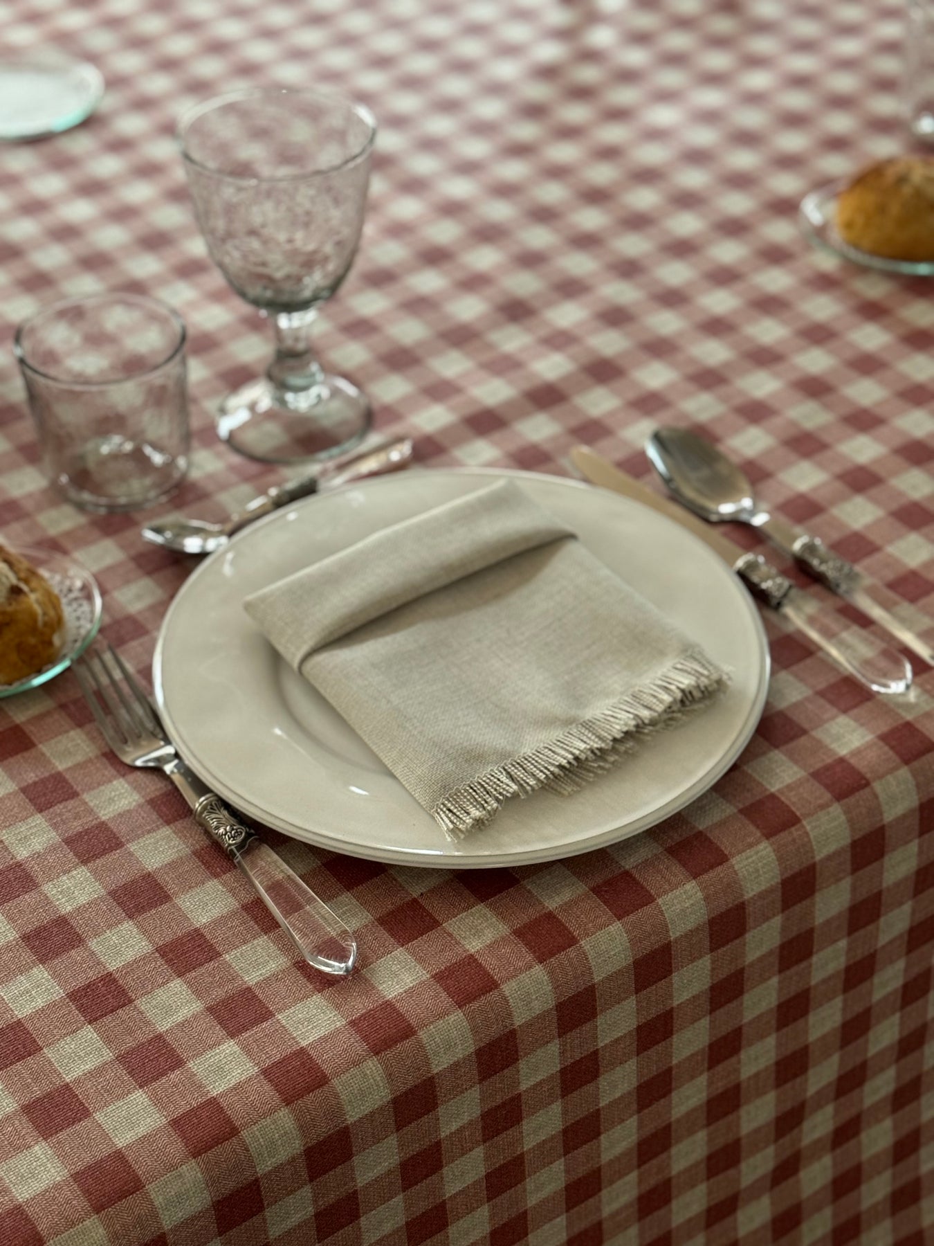 En La Compañía Francesa nos gusta hacer manteles cuadrados para mesas redondas, ya que lucen más sofisticados y modernos.
